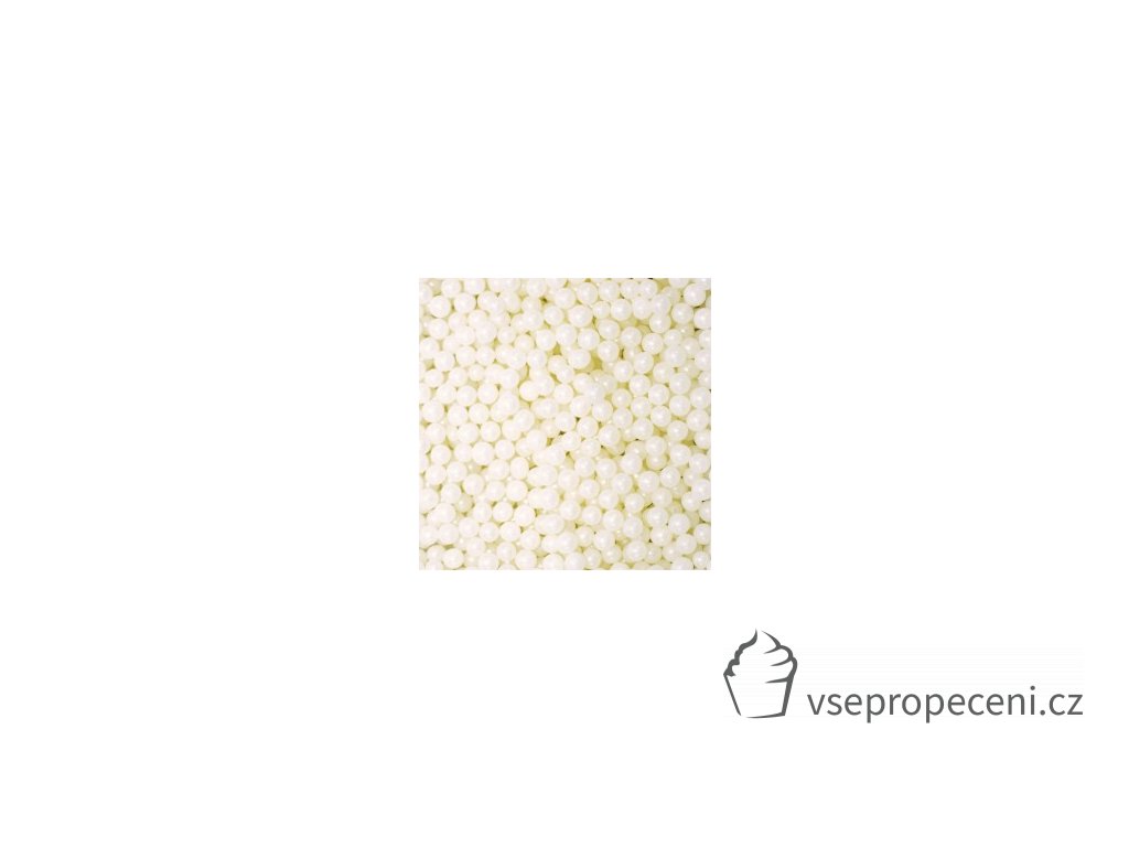 Cukrový bílý posyp ve tvaru perliček.